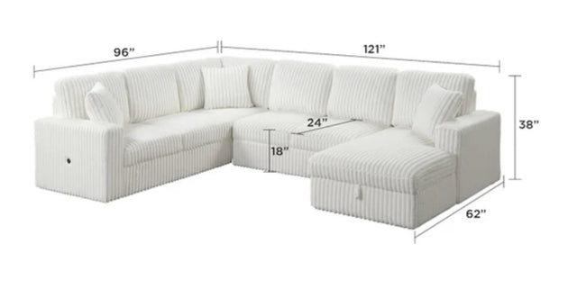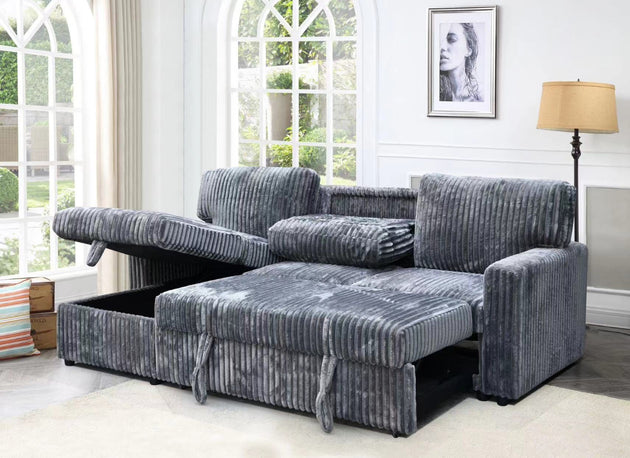 Becky Sectional Pull Out Sleeper Couch With Storage Chaise - Corduroy Fabric