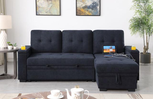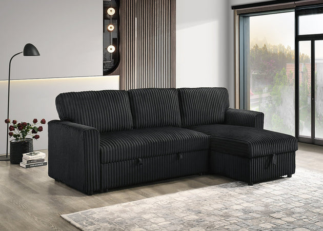 Amara Reversible Sleeper Sectional w/ Storage - Black