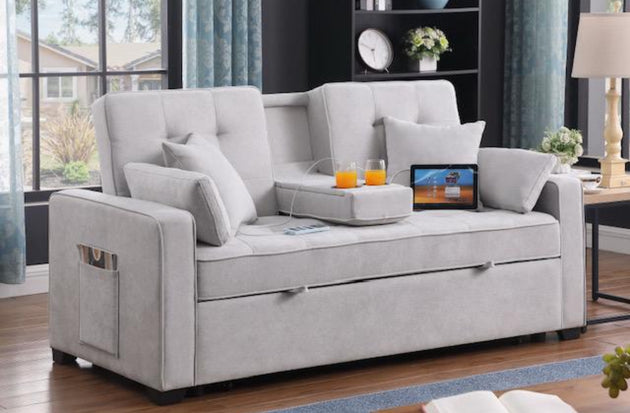 Alfonso 93.25" Sofa w/Bed & Storage in Beige