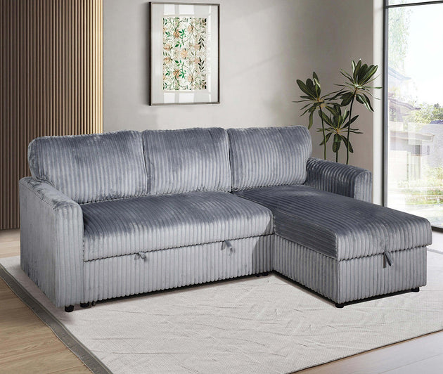 Daniel Corduroy Reversible Sectional Sofa with Pull-Out Sleeper and Storage