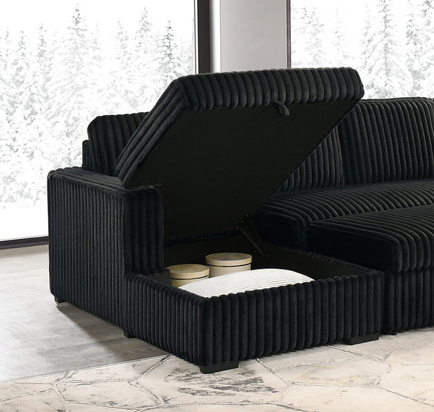 Amara Reversible Sleeper Sectional w/ Storage - Black