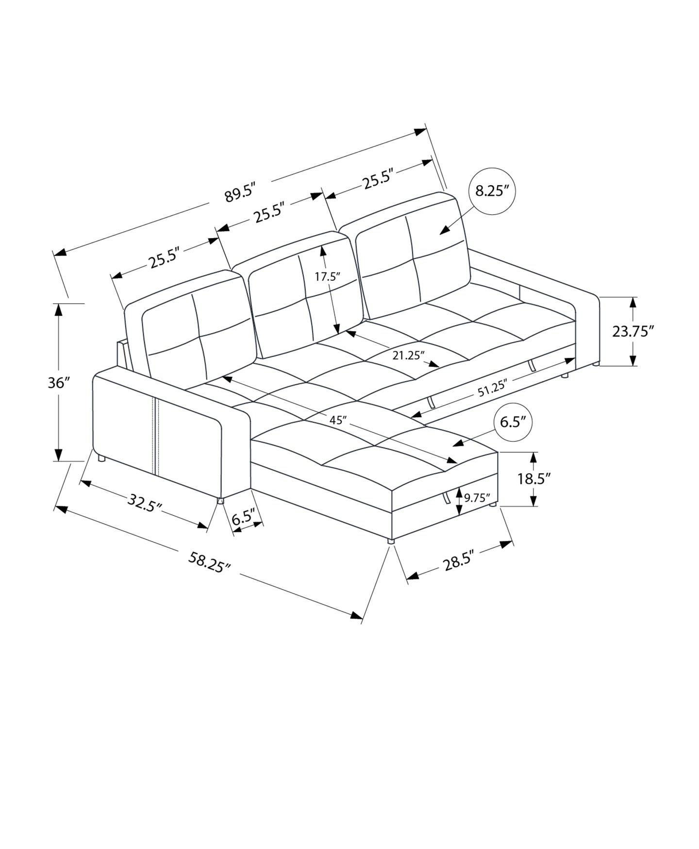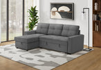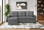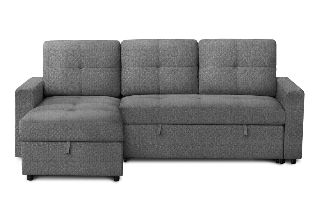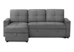 Transform your space with this roomy 90 long Lumos 3-seater sleeper sofa, a stylish and multifunctional addition to any living room or guest room. This convertible sofa bed with button-less tufting on the back and seats, embodies transitional design in a chic dark grey fabric upholstery to seamlessly blend modern aesthetics with timeless comfort. The storage lounger has a versatile setup allowing you to position on the left or right hand side. Enjoy unparalleled comfort with a pocket spring system and enveloped in high density foam all over, providing a luxurious seating experience while doubling as a cozy sleeping solution for guests. The user-friendly pull-out mechanism allows you to convert this sleeper sofa into a spacious bed with minimal effort, making it perfect for unexpected sleepovers. The cleverly designed storage chaise offers an ideal space for blankets and pillows, keeping your living area organized and clutter-free. Our easy-to-follow assembly instructions ensure that you can enjoy your new sleeper sofa in no time. Plus, your purchase comes with a 1 year limited warranty against manufacturer defects, providing peace of mind as you elevate your home decor.