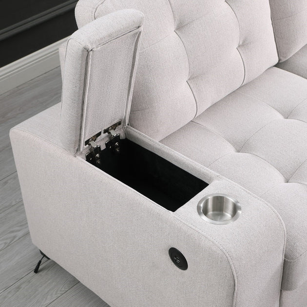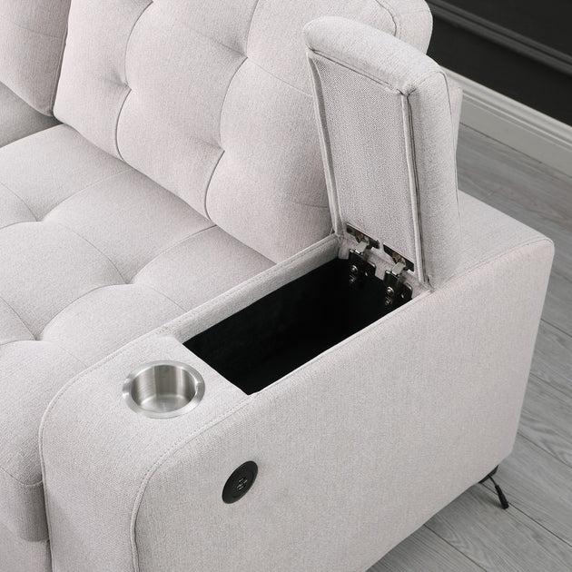 Liora 2-Piece Light Grey Sleeper Sectional with Storage & USB Por