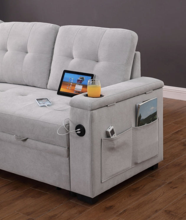 Allora Reversible Sleeper Sectional w/ Storage - Grey Fabric