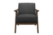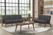 The retro-inspired wood framing of the Kamala Collection will perfectly accent your modern home décor. Subtle contouring to the seating collection’s wood frame is finished in walnut, presenting as a classic complement to the dark gray fabric that covers the padded seats and backs of the sofa, love seat and chair.