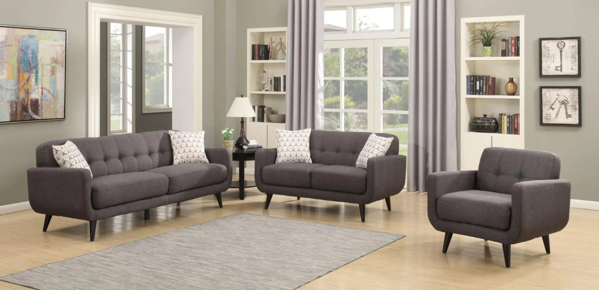 Upgrade your living room with Kristal - a 3-piece modern fabric sofa set. With its sleek and stylish design,Keistal brings a touch of modernity to any space. Embrace the classic feel of this versatile living room furniture and make a bold statement in your home! The set includes a sofa, loveseat, and chair, offering a complete solution for your seating needs.