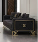 A symbol of luxury, the Luis sofa collection is sure to add glamour and class to any room. Features clean lines, monogrammed sides and toss pillows and custom stainless steel legs. Upholstered in plush velvet, this sofa was designed so you can relax in luxury