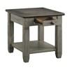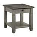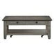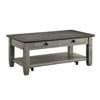 Inspired by the relaxed charm of a casual country home, the Granby Collection occasional table set brings warmth, character, and everyday functionality to your living room. The cocktail table showcases a harmonious two-tone design, pairing an antique gray base crafted from acacia and pine solids with a rich coffee-finished oak veneer top. This balanced contrast creates a welcoming, lived-in look that feels both timeless and inviting. Dark-finished metal knob hardware adds subtle definition to the drawers, while an open lower shelf offers the perfect space to display décor or store everyday items. Smooth-rolling casters complete the design, allowing the cocktail table to move easily within your space.