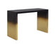 Alluring and captivating, this modern console table is designed to stand out. Crafted from lacquered stainless steel with a stunning black and antique brass ombre finish. Made in India. With refined craftsmanship, this design was brought to life by skilled local artisans. By nature, these materials develop unique imperfections such as fissures, markings and colour variations for a truly one-of-a-kind piece.