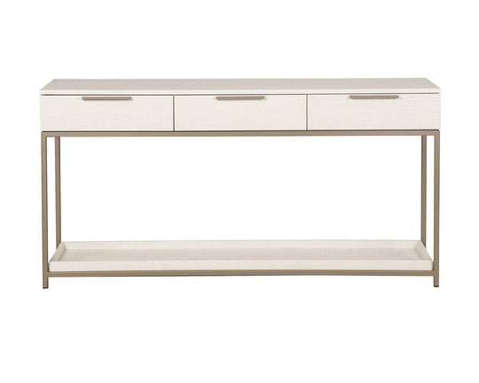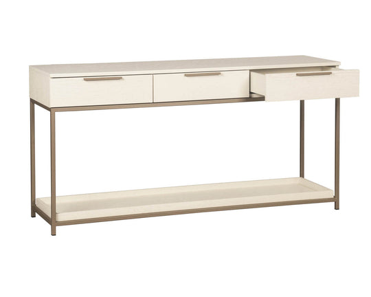 A modern console table designed to add a beautiful touch to living and lounge spaces. Crafted from charcoal grey oak wood veneer with three drawers and shelf for added storage. Brushed gold iron hardware completes the...Sale price $2,405.00Regular price $3,207.00Sale price $2,405.00Regular price $3,207.00