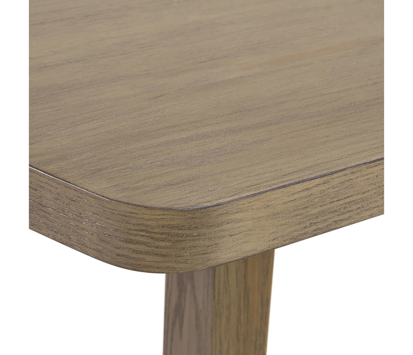 Make a statement with the Portland Dining Collection—where bold design meets refined simplicity. Crafted in a grained oak veneer with a deep black finish, this table transitions seamlessly from grand gatherings to quiet dinners. Subtly rounded edges bring softness to the strong silhouette of its open pedestal base. Striking yet inviting, it elevates any dining space with effortless modern style.