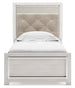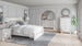 Light finish with subtle pearl effect over replicated cedar grain and authentic touch. Cases and bed are accented with faceted chrome details. Large scaled chrome handle with mosaic details. Side roller glides for smooth operating drawers. Drawer interiors lined with a replicated linen design for a clean finished look. Queen/full (57) and king/cal king (58) upholstered panel headboards are accented with LED lighting and include a remote for color and brightness options. Included remote holder discreetly keeps light remote accessible. Queen (57,65) and king (58,69) headboards are accented with emulated crystal tufted gray upholstery. Queen (65) and king (69) upholstered panel bookcase headboards feature glitter details accented with LED lighting. Both king and queen beds have a panel footboard (54,56) and storage footboard option (54S, 56S). Queen (57,65) and king (58,69) headboards can attach to a bolt-on metal bed B100-31 or B100-66 respectively. Both USB and Qi wireless charging options are provided with the nightstand. Queen (54, 54S, 65) and king (56, 56S, 69) can use -95 platform rails and require B100-13 (queen) or B100-14 (king) roll slats eliminating the need for a box spring. Safety is a top priority, clothing storage units are designed to meet the most current standard for stability, ASTM F 2057 (ASTM International). Drawers extend out to accommodate maximum access to drawer interior while maintaining safety.
