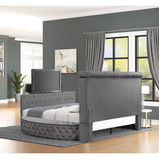 Jenn Grey Fabric Platform Bed w/ Wired Storage Drawer