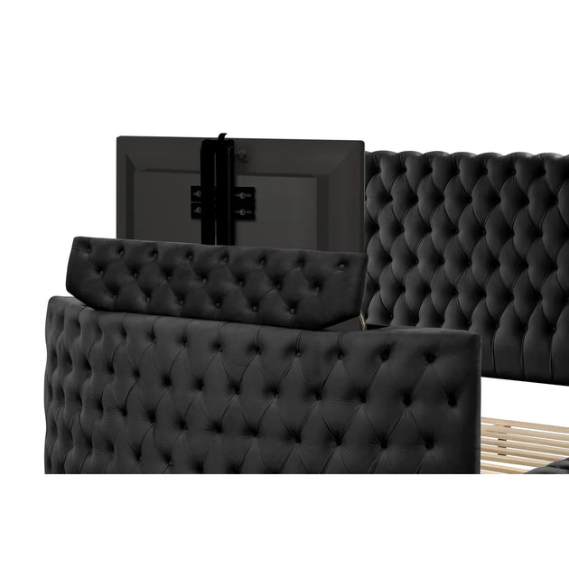 Leesa Queen Platform Bed With Footboard Storage and Headboard with LED Light