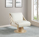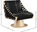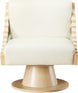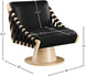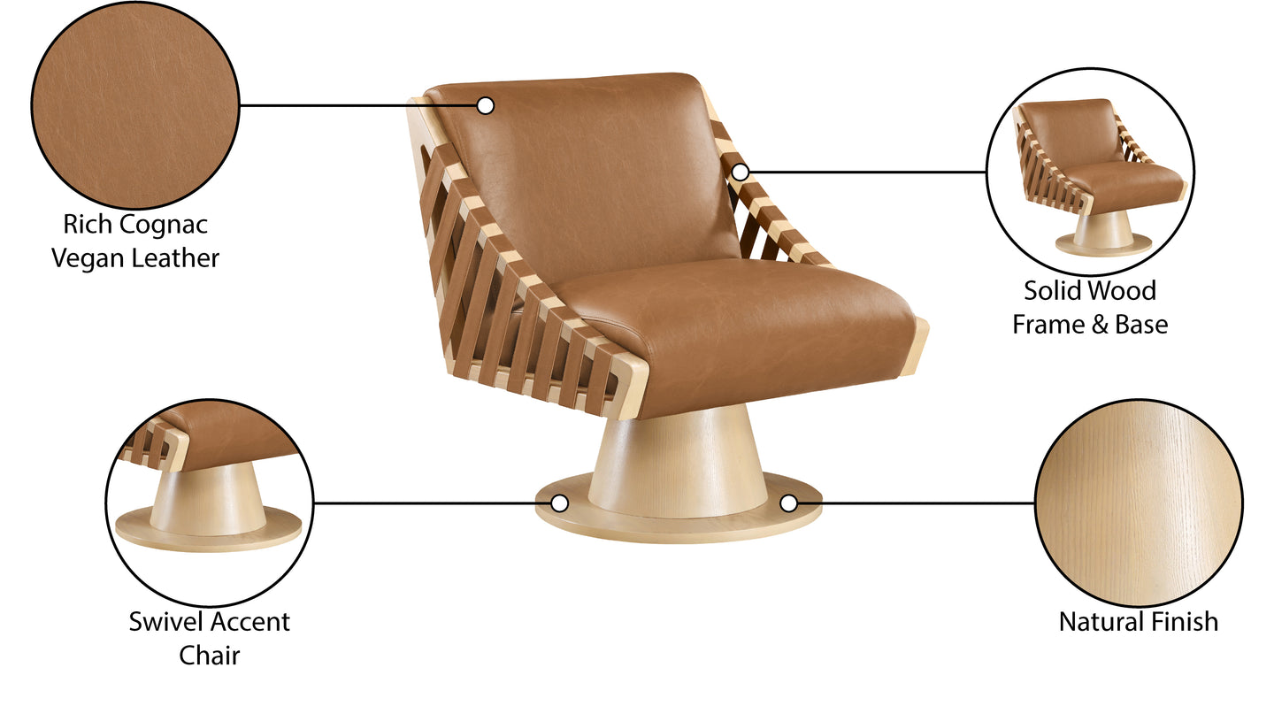 Revitalize your space with the Millwin black vegan leather swivel accent chair, featuring a sleek vegan leather upholstery that marries modern elegance with eco-friendly craftsmanship in a unique art deco manner. This stylish chair offers smooth 360-degree swivel functionality on a natural wood frame and base, making it a versatile choice. Its contemporary design and plush cushioning provide both comfort and visual appeal, adding a sophisticated touch to any setting.