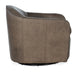 Offered in a fun barrel-like silhouette with a low back and sloped arms, the Roper Swivel Club chair is covered in the Big Top Dark Taupe semi-aniline top grain leather with intricate baseball stitched trim detail. Tight back and loose seat cushion.