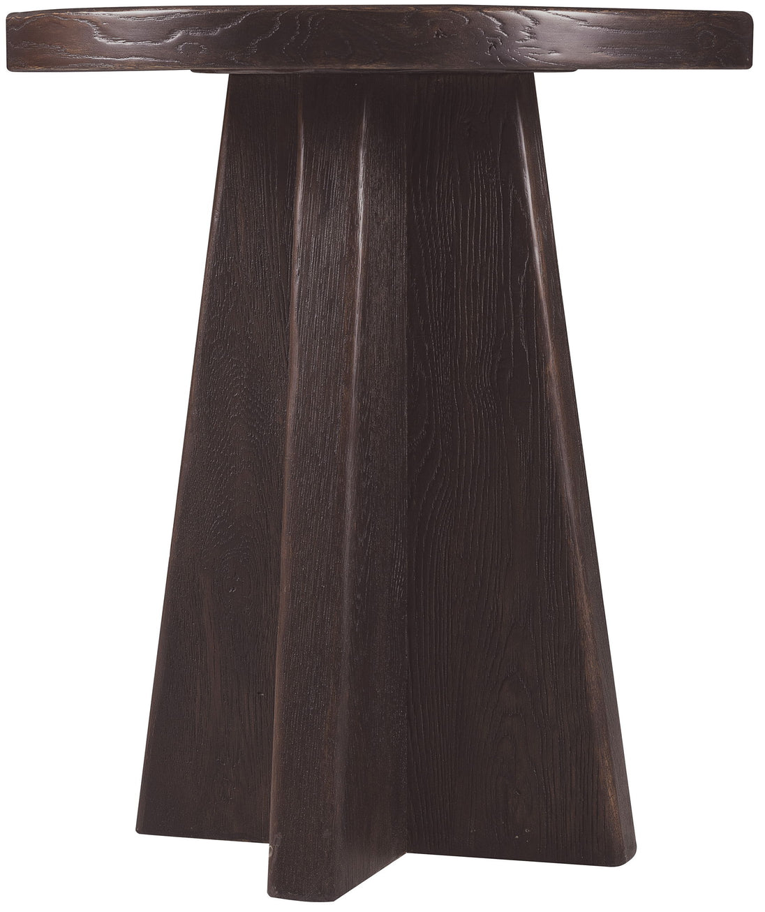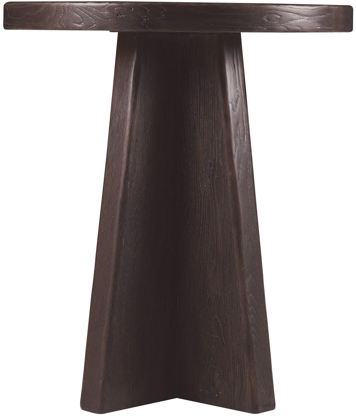 The finish gives this round end table a rich, bold character. Featuring a pedestal base and crafted from oak solids and veneers, it delivers a perfect balance of rustic appeal and enduring quality.