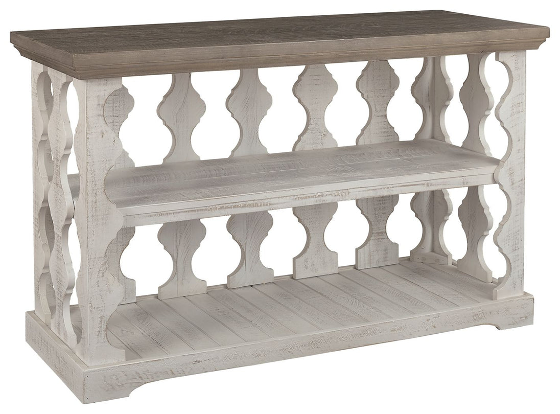 - Two-tone distressed finish; weathered gray top and vintage white base