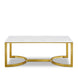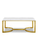 The London table, by Meridian Furniture. Featuring a beautiful contemporary design. Constructed of gold finished stainless steel and solid stone top, it's guaranteed to be the highlight of any room.