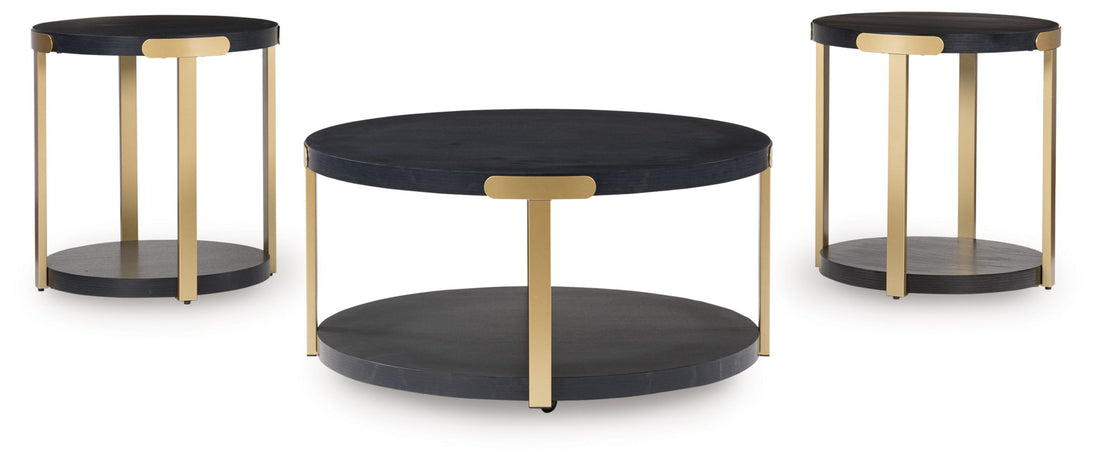 Shylore - Occasional Table Set (Set of 3) - Black / Brass Finish