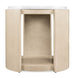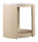 Understated luxury defines the Westwood Table, featuring a Volakas stone top and quartered oak veneers in a Polished Limestone finish. The open base is ideal for styling books and décor, embodying the soft modern aesthetic.