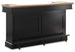 - Top with butcher block veneer pattern in deep brown wood-tone finish