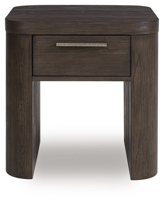 Elevate the everyday with this end table. A rich medium brown finish brings added flexibility, complementing a variety of casual contemporary color schemes. Rounded corners soften the look, while drawers invite miscellaneous storage. Adding chic sofa-side...Sale price $479.99Regular price $699.99Sale price $479.99Regular price $699.99 -