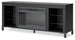- Fireplace insert and shelves feature color and brightness controlled LED lighting
