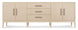 The Westwood Credenza combines sleek modern design with subtle sophistication, making it perfect for living rooms or entertainment spaces. Finished in Polished Limestone over quartered oak veneers, it exudes a soft modern appeal. Featuring four doors with one adjustable shelf behind each pair, three center drawers, and a ventilated back panel with wire management cutouts, this credenza is ideal for holding entertainment systems or providing extra storage. The custom plated Radiance finish hardware and tapered legs complete the look of this elegant yet functional piece.