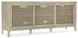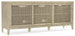 With a romantic French laundry and Shabby Chic appeal, the Ciao Bella Entertainment Console will star in your family room with its Flaky White finish with hand wire brushing over light and airy perforated doors. Crafted of Poplar and Hardwood Solids with Maple Veneers, the console has 3 sliding doors with one adjustable shelf behind each door, a ventilated back panel, 3-plug outlet and accommodates up to an 80- inch TV.