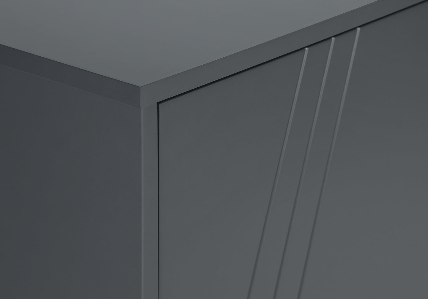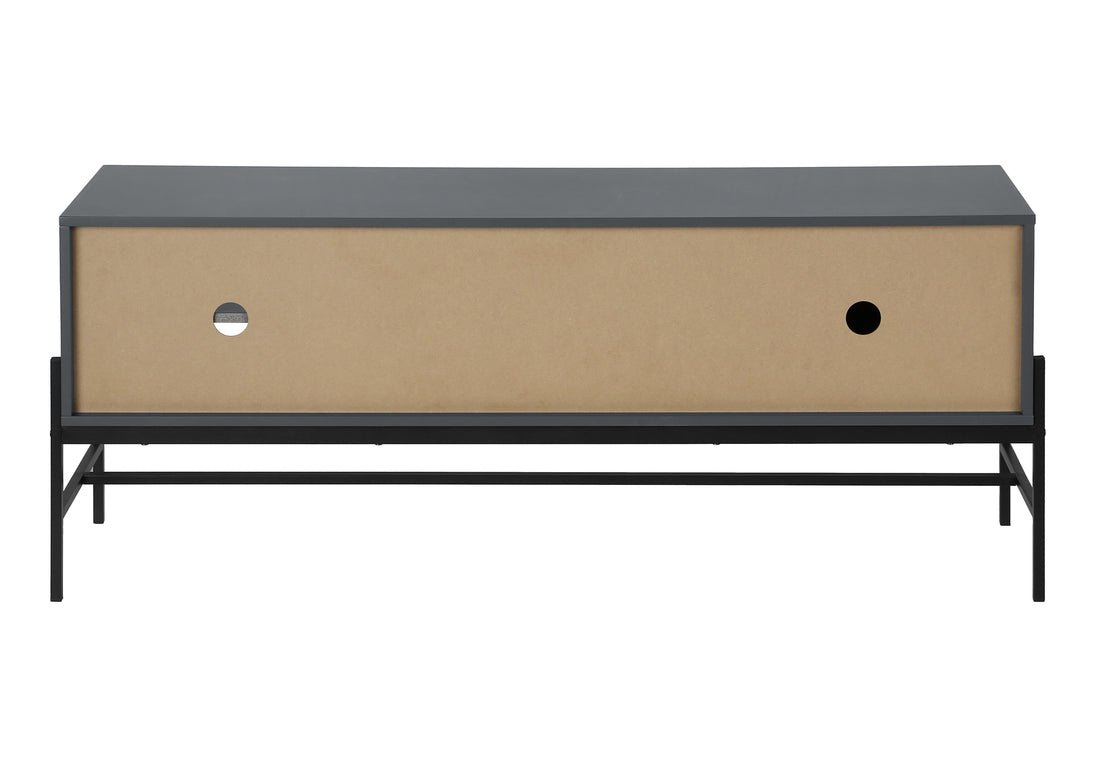 Add stylish and functional storage to your living room or bedroom with this trendy 60 inch tv stand and media console. This durable and fashionable contemporary stand is constructed in grey laminate on top and supported with a sleek black metal frame. It offers plenty of storage for your media with a closed cabinet accented with sleek groove lines design on the doors, and open shelf space for your media equipment. This tv console unit includes a hidden wire management hole behind the fixed open shelving and another behind the spacious storage cabinet to keep your cables organized and out of sight. Easy to assemble with illustrated instructions and all necessary hardware included, means you will have this media entertainment center up and ready to use in no time. Durably designed and backed with a 5 year limited warranty, you will be getting a product that was made with quality in mind.