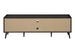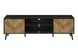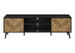 - Featuring brown wood-look doors with attractive slanted groove lines for a stylish appeal; this media entertainment center includes 2 wire management holes behind the open fixed shelf for organization and storage.