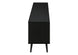- This 72 inch contemporary tv stand, finished in a brown and black laminate and supported with sturdy black wood legs, makes an eye-catching modern statement in a living room, bedroom, or office space.