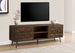 Jazz up your home with our stylish and trendy 72 inch long tv stand in a rich walnut laminate finish, the perfect addition to your modern living space! This tv console features solid wood legs and durably designed solid construction in a fashionable mid century style that is sure to elevate your home decor. Offering ample storage space that includes 2 fixed shelves and an elegantly paneled closed cabinet at each end that operate with a push latch mechanism for easy opening, this tv stand is both functional and chic. The easy to clean top and 2 cable management holes in the center ensure that your entertainment center stays organized and looking great. Assembly is a breeze with the included hardware and easy to follow instructions. Plus, with a 5 year limited warranty against manufacturer defects you can trust that this tv stand is built to last. This must-have console for your bedroom or living room will instantly upgrade your space!