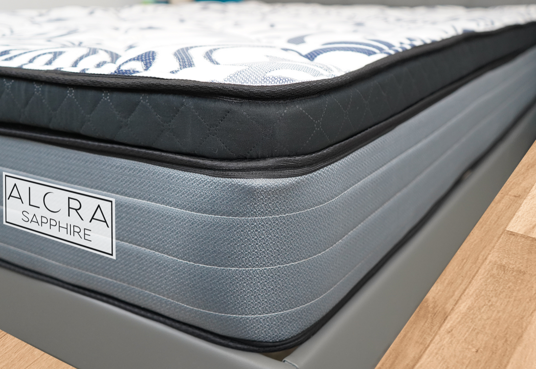 The Sapphire is a true jewel of our mattress lineup. The pillowtop is stitched with a polyester and soft foam filling. Followed by a two inch foam layer and a high density transition layer, on top of the strengthened steel Canadian made coils. Premium comfort at a non-premium price.