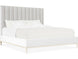 Transform your bedroom into a serene sanctuary with the Cascade King Upholstered Bed. The channeled fabric headboard, upholstered in soft Wolf Pearl fabric, combines with a sturdy wood base and tapered legs for a sophisticated, modern look. The bed’s light taupe finish on oak veneers, with subtle distressing, brings a sense of calm and elegance to your space. Includes headboard, footboard, and rails for a complete, cohesive design.