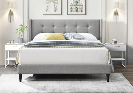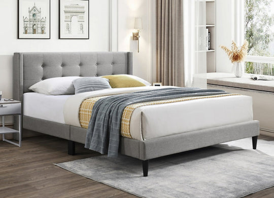 Stella Platform Bed with Button Tufted Wingback Headboard Give your bedroom a touch of timeless charm with the Stella Platform Bed. Upholstered in soft grey fabric, this transitional-style bed features a stunning wingback headboard with...Sale price From $259.00Regular price $549.00Sale price From $259.00Regular price $549.00 -