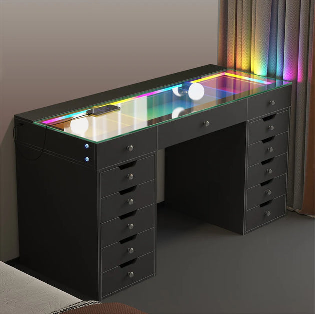 Eva-RGB Vanity Desk Pro - 13 Storage Drawers