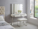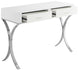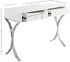 Trust this Monroe Vanity/Desk/Console table to pull triple duty in your home. Use this beautiful unit as a desk for being productive when you're out of the office, or transform it into a vanity to hold all your beauty supplies close at hand. The Monroe is also great as a console table when paired with a mirror or large work of art. Its chrome stainless steel legs and hardware add a touch of elegance and refinement against the contrast of the vivid white lacquer finish.