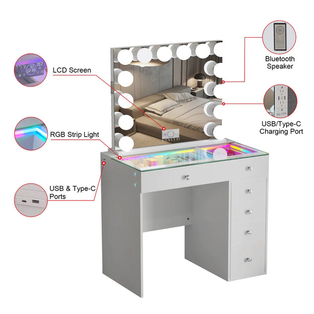 Mini Diana Vanity Set -6 Storage Drawers with Mirror