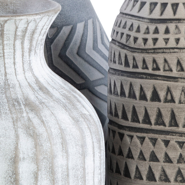 Sara Textured Ceramic Vases (Set of 2) Gray
