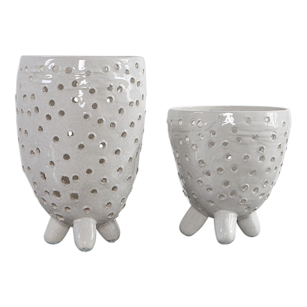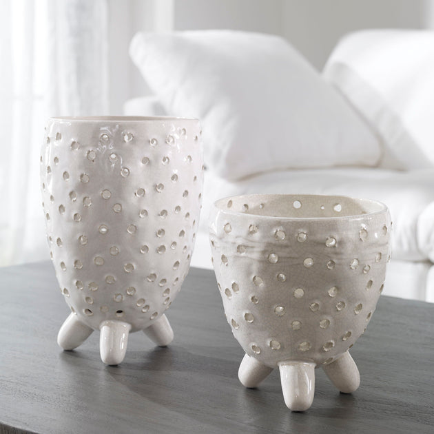 Sara Textured Ceramic Vases (Set of 2) Gray