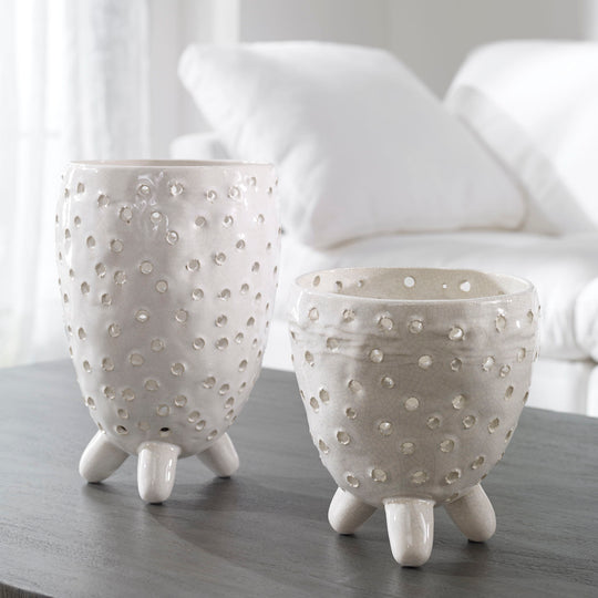 Set Of Mid-century Modern Tripod Base Vases Are Organically Shaped And Feature A Textured Crackled Ivory Ceramic With Pierced Holes. Sizes: Sm-8x9x8, Lg-8x12x8Product Features Uttermost's Vases, Urns & Finials Combine Premium Quality Materials With Unique High-style...Sale price $379.00Regular price $599.00Sale price $379.00Regular price $599.00