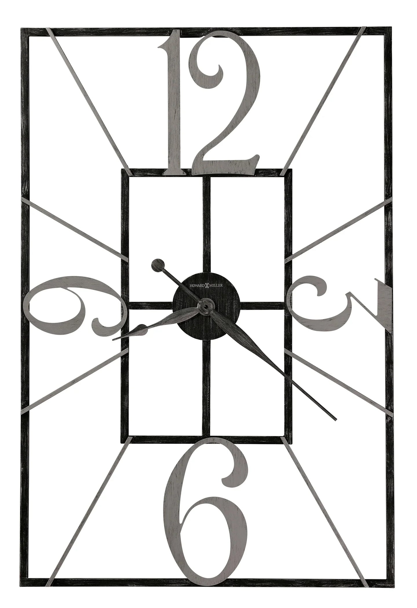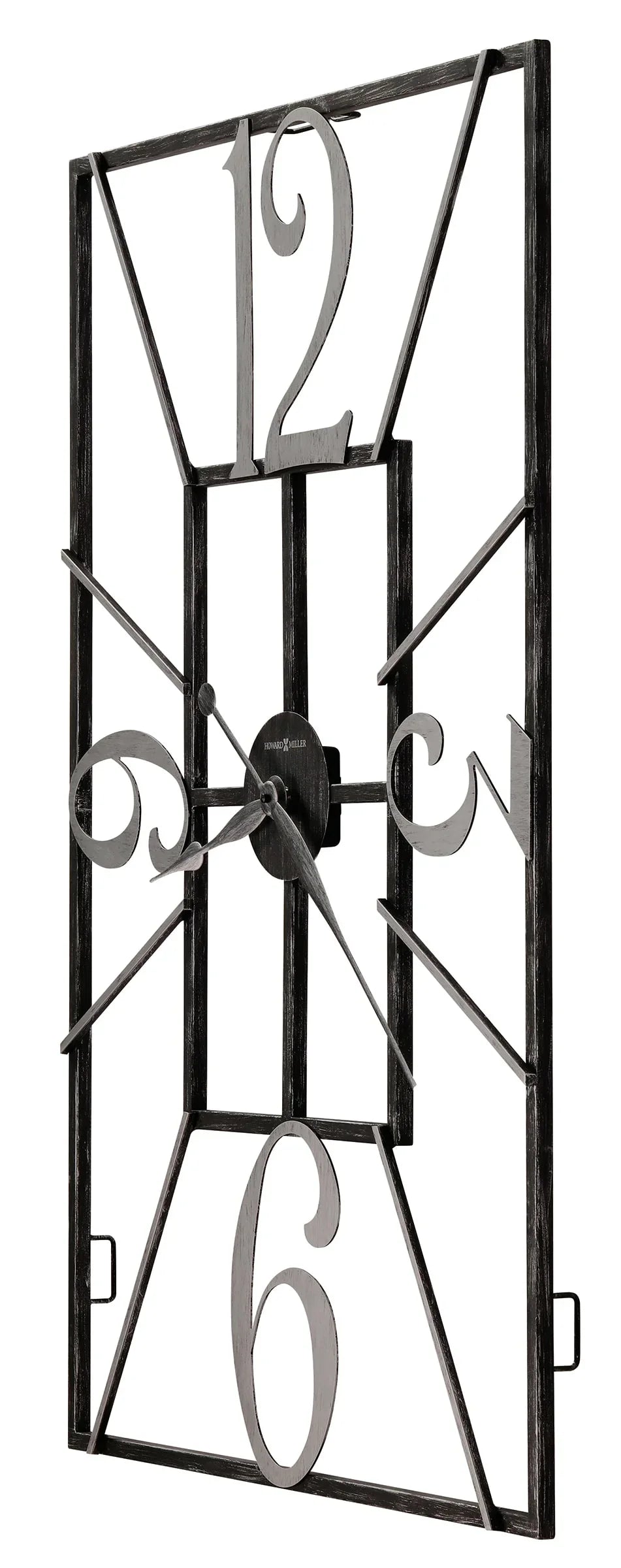 - This rectangular, open-frame, wrought-iron oversized gallery wall clock is finished in charcoal.