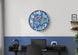 - Brighten up a room with this striking 18" round wall clock featuring a multi-colored face, designed to capture attention and enhance modern home decor for juvenile spaces.