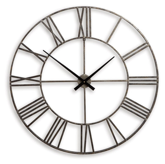 Casual style meets practical function with this wall clock. Roman numerals are easy to read on the sleek metal frame in an antiqued finish. Keeping track of time has never been so stylish. Paquita - Wall...Sale price $139.99Regular price $199.99Sale price $139.99Regular price $199.99 -
