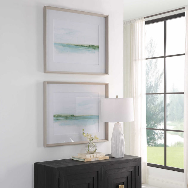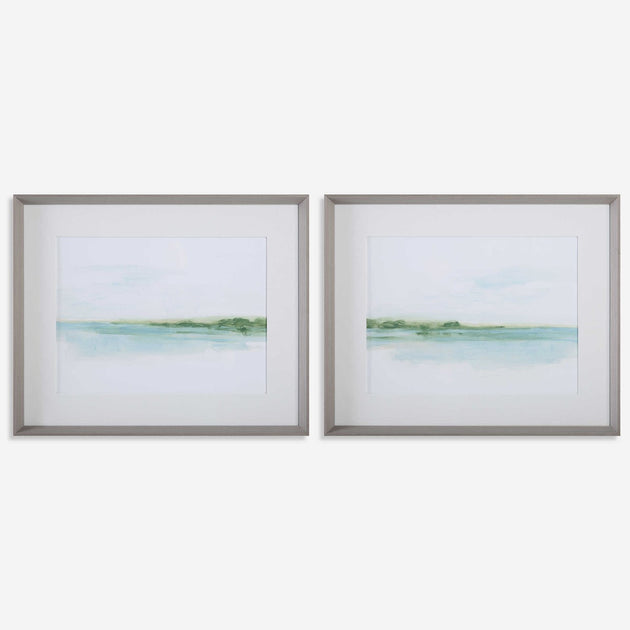 Green Ribbon Coast Framed Prints,(set of 2)