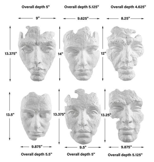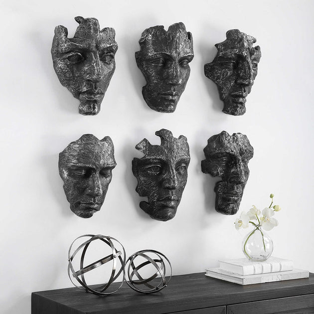 Self-Portrait Wall Decor, Gray,(set of 6)