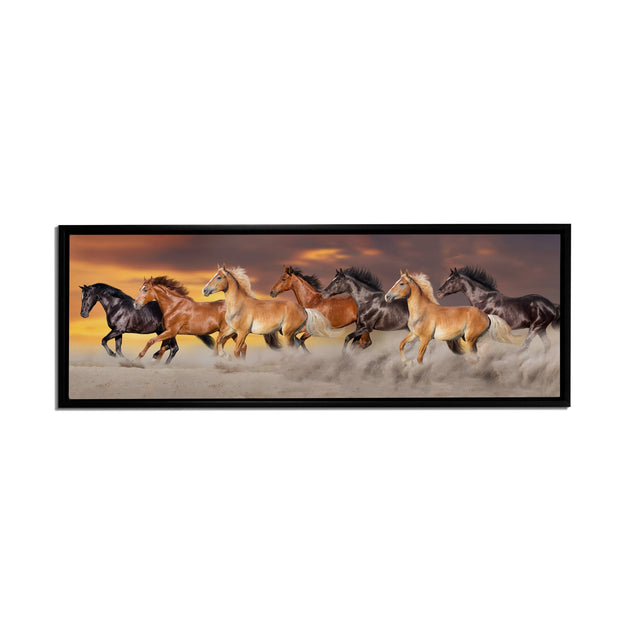 Team of 7 Horses- Wildlife Canvas Art - Gold varnish