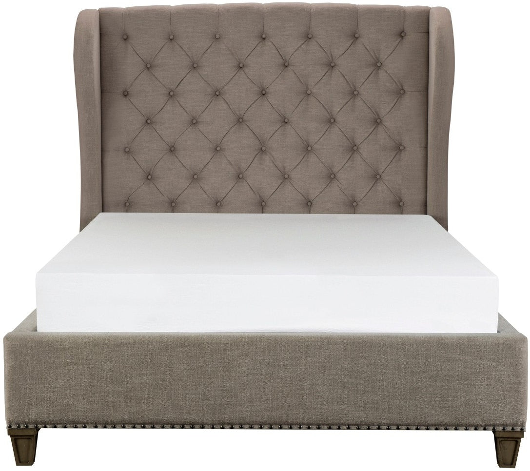Specifications: Bedroom set includes queen bed, nightstand, dresser and mirror. Made of oak veneer, wood and engineered wood. Gray cashmere finish. Nightstand with 2 dovetail drawers with ball bearing glides. Dresser with 9 dovetail drawers with ball bearing glides. Antique bronze tone knobs. Fabric Color: Off-White. Fabric Content: 100 percent Polyester. Fabric Cleaning Code: Upholstery (S). Prop 65 Information.